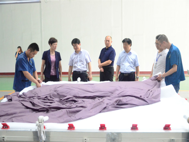 人力行政總監(jiān)孫玉濤介紹了公司發(fā)展的相關(guān)情況,工會(huì)主席鄭安江就公司在企業(yè)文化建設(shè)、員工利益保障等相關(guān)工會(huì)工作向調(diào)研組進(jìn)行了詳細(xì)匯報(bào)。隨后,胡少華一行與公司職工代表面一車(chē)間李西洪、家紡成品車(chē)間朱永亮和服裝車(chē)間溫永霞進(jìn)行了交流座談,詳細(xì)了解了公司在職工培養(yǎng)、福利待遇、權(quán)益維護(hù)等方面的具體情況。調(diào)研組一行先后參觀了公司工程技術(shù)研究院、創(chuàng)意中心、花布智能生產(chǎn)車(chē)間、家紡成品展廳及車(chē)間等處。胡少華表示,公司作為紡織印染行業(yè)的龍頭企業(yè),取得的成績(jī)有目共睹,并且公司在維護(hù)職工權(quán)益、企業(yè)文化建設(shè)、提升職工素質(zhì)等方面的工作經(jīng)驗(yàn)值得借鑒和推廣。