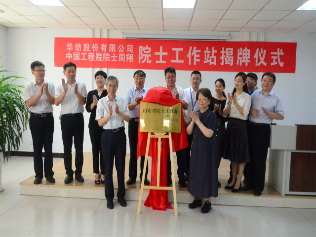 8月2日,公司與中國工程院院士周翔合作建立的院士工作站,在公司科技產業(yè)園舉行揭牌儀式。儀式由公司黨委書記、董事長王力民主持并介紹華紡科技發(fā)展情況,濱城區(qū)委常委、組織部長王麗,中國工程院院士、東華大學教授周翔,濱州市副市長曹玉斌先后致辭;周翔院士、曹玉斌副市長為華紡院士工作站揭牌。