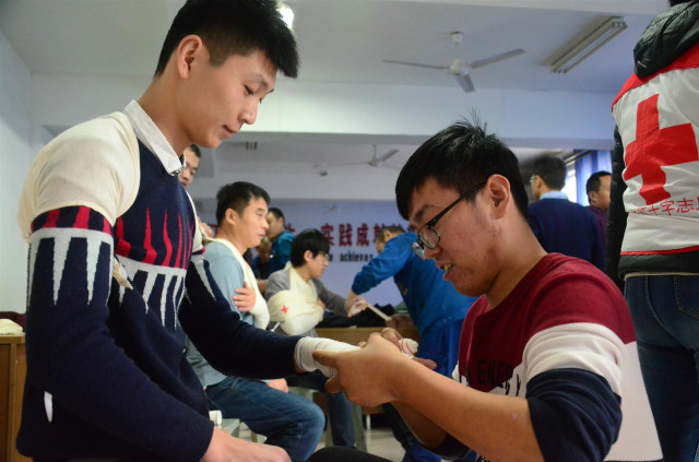 參加培訓(xùn)的安全員通過認真學(xué)習(xí)和按照要求進行實際操作演練,在學(xué)習(xí)心肺復(fù)蘇的操作以及AED的使用,創(chuàng)傷救護止血、包扎、固定、搬運等四大技術(shù)的理論與實際操作基礎(chǔ)上,還認真聆聽了中國紅十字會的發(fā)展歷程以及“三救三獻”的工作職責。