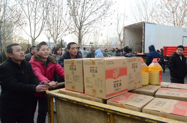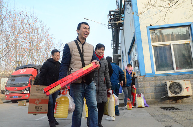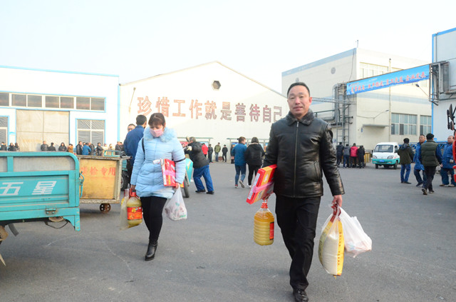 1月21日,公司主廠區(qū)廣場(chǎng)上再現(xiàn)熱烈氣氛,員工們以部門為單位,在這里領(lǐng)取公司為在崗員工和退休職工準(zhǔn)備的豬肉、花生油、大米等“年貨”,以體現(xiàn)對(duì)廣大員工建設(shè)企業(yè)、奉獻(xiàn)事業(yè)的慰問(wèn)之情。
