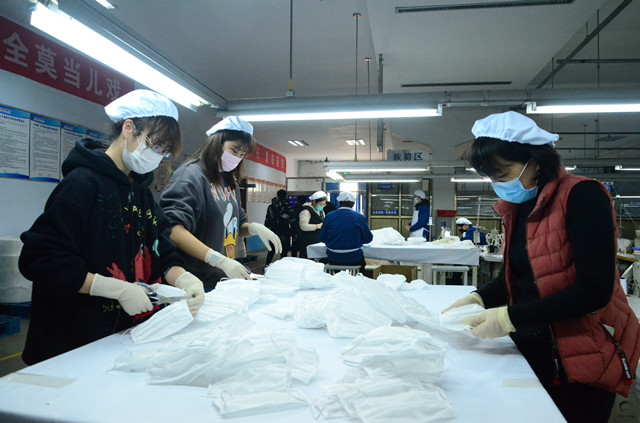 在此之前,公司已組織部分員工提前復工,投入疫情防控應急物資口罩生產(chǎn)當中。隨著印染、家紡成品等產(chǎn)業(yè)板塊恢復生產(chǎn),員工返崗率達95%以上。公司在嚴格規(guī)范做好信息排查、防疫宣傳、通風換氣、環(huán)境消毒、測量體溫、人員管控等疫情防控工作基礎上,廣大返崗員工積極投身生產(chǎn)工作,追求優(yōu)質(zhì)高效,為打贏疫情防控阻擊戰(zhàn)貢獻華紡力量。