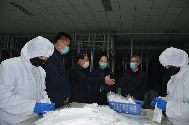 陪同參觀過程中,王力民簡(jiǎn)要介紹了公司在疫情防控方面所做的具體工作,重點(diǎn)介紹了復(fù)工后的生產(chǎn)運(yùn)營(yíng)、當(dāng)前口罩生產(chǎn)產(chǎn)能和新增清潔生產(chǎn)項(xiàng)目的進(jìn)展情況。張忠慶一邊仔細(xì)地察看生產(chǎn),一邊認(rèn)真聽取企業(yè)情況,對(duì)公司有序推進(jìn)生產(chǎn)經(jīng)營(yíng),特別是完善產(chǎn)業(yè)發(fā)展方面的舉措給予了充分肯定,并就企業(yè)運(yùn)行保障等方面的工作做了指導(dǎo)。