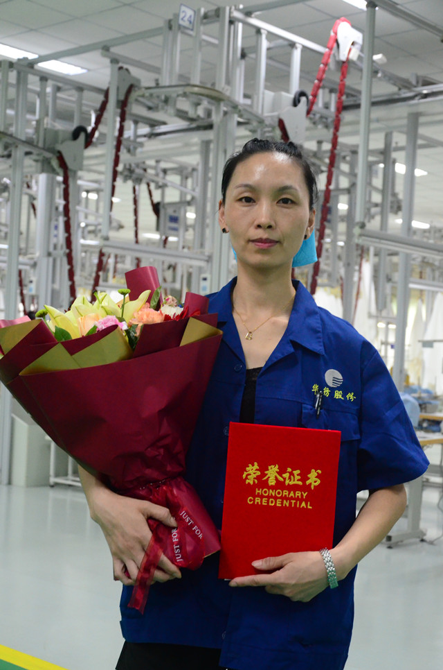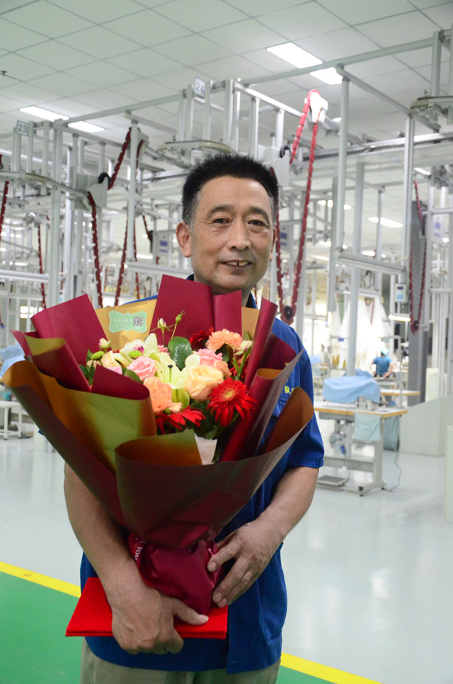 家紡成品車間勞動競賽總結(jié) 優(yōu)秀員工捧起大花束