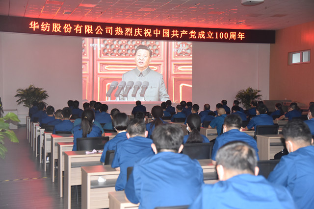 7月1日上午8時,華紡股份有限公司黨委組織公司黨委、行政班子成員、基層黨支部廣大黨員干部,集中收看慶祝中國共產(chǎn)黨成立100周年大會,認(rèn)真聆聽習(xí)近平總書記的重要講話。