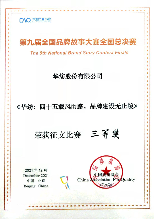 導(dǎo)讀:日前,第九屆全國品牌故事大賽落下帷幕,各獎項(xiàng)均有歸屬。公司文化中心陳光娥撰寫的征文作品《華紡:四十五載風(fēng)雨路,品牌建設(shè)無止境》榮獲三等獎。
