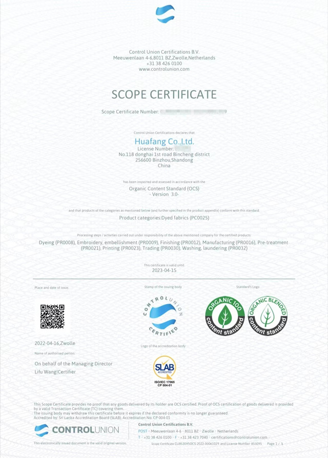 導(dǎo)讀:公司于3月份通過(guò)權(quán)威機(jī)構(gòu)的現(xiàn)場(chǎng)審核,順利取得GOTS/OCS/GRS證書(shū)。