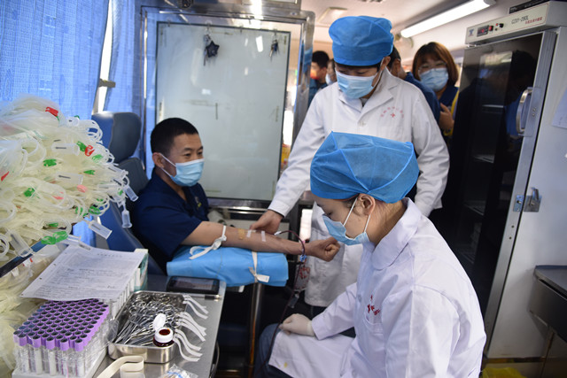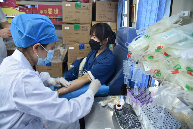 獻血隊伍中,既有工作多年的老同志,也有剛剛參加工作的新員工。獻血車就位后,員工在濱州市中心血站工作人員的指導下,認真填寫獻血登記表、測量血壓、抽血化驗,經血液檢驗合格后開始獻血。“我參加無償獻血的初衷,就是想盡自己的一點力量。”在場參與獻血的一名員工說到。簡單的一句話,展現(xiàn)的卻是充滿溫暖情感的無私之愛。
