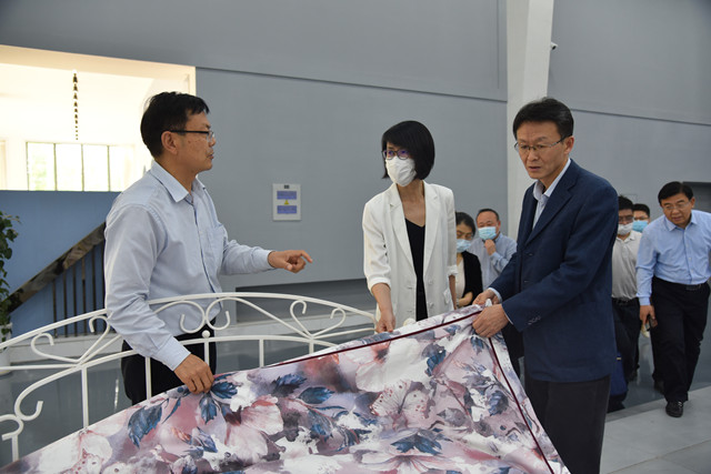 調(diào)研組一行先后到公司智云中心、檢測(cè)中心、綜合辦公區(qū)、服裝面料展廳、花布展廳、家紡展廳、創(chuàng)意設(shè)計(jì)中心、工程技術(shù)研究院、花布車間生產(chǎn)現(xiàn)場(chǎng)等實(shí)地調(diào)研,詳細(xì)了解了企業(yè)運(yùn)行、市場(chǎng)營(yíng)銷、科技創(chuàng)新、戰(zhàn)略規(guī)劃等情況,詢問企業(yè)發(fā)展過程中遇到的問題和困難,并聽取了公司董事長(zhǎng)盛守祥對(duì)公司總體生產(chǎn)經(jīng)營(yíng)情況的匯報(bào)。調(diào)研組對(duì)公司多年來的發(fā)展成績(jī)給予了充分肯定,并表示華紡公司多年來深耕紡織印染領(lǐng)域,不斷做大做強(qiáng)、是一家高質(zhì)量發(fā)展、成長(zhǎng)性良好的企業(yè);同時(shí),企業(yè)在發(fā)展的過程中積極履行社會(huì)責(zé)任,體現(xiàn)了企業(yè)的社會(huì)擔(dān)當(dāng)。
