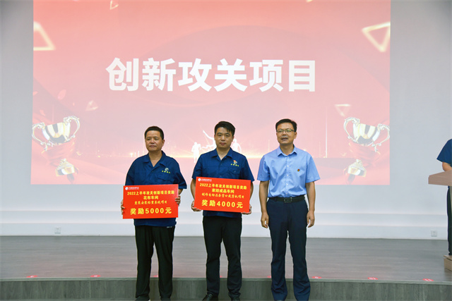 會上,李風(fēng)明宣讀了公司對2022年上半年度CQI項目、創(chuàng)新攻關(guān)成果等表彰決定;盛守祥為CQI項目代表、創(chuàng)新攻關(guān)一等獎項目代表頒發(fā)獎勵牌,總經(jīng)理閆英山為各車間創(chuàng)新攻關(guān)其他受獎項目代表頒發(fā)獎勵牌,李風(fēng)明為質(zhì)量之星、效率之星、工藝操作之星受獎代表頒發(fā)榮譽證書,公司安全總監(jiān)孫中然為現(xiàn)場6S之星、精益提案之星受獎代表頒發(fā)榮譽證書。會議由公司團委書記陳冰主持。