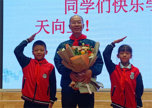 在課堂結(jié)束后的采訪環(huán)節(jié)中,同學(xué)們踴躍提問,趙奇生回答了同學(xué)們的問題并且鼓勵(lì)同學(xué)們“學(xué)習(xí)如逆水行舟,不進(jìn)則退,要不斷學(xué)習(xí),不斷進(jìn)步。”活動(dòng)最后,學(xué)生代表為趙奇生戴上紅領(lǐng)巾并向他獻(xiàn)花。