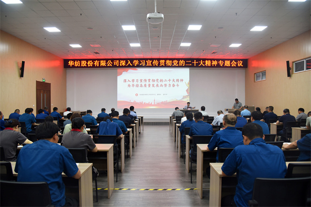 盛守祥指出,黨的二十大是在全黨全國各族人民邁上全面建設(shè)社會主義現(xiàn)代化國家新征程、向第二個百年奮斗目標進軍的關(guān)鍵時刻召開的一次十分重要的大會,是一次高舉旗幟、凝聚力量、團結(jié)奮進的大會。大會回顧總結(jié)了過去五年的工作和新時代十年的偉大變革,闡述了開辟馬克思主義中國化時代化新境界、中國式現(xiàn)代化的中國特色和本質(zhì)要求等重大問題,對全面建設(shè)社會主義現(xiàn)代化國家、全面推進中華民族偉大復(fù)興進行了戰(zhàn)略部署。也為我們?nèi)A紡事業(yè)高質(zhì)量發(fā)展指明了前進方向。華紡作為中國紡織印染行業(yè)重要骨干力量,將堅決貫徹黨的二十大精神,牢牢把握新時代新征程黨的使命任務(wù),自覺把責任擔當放在心上、扛在肩上,以高質(zhì)量發(fā)展為目標,踔厲奮發(fā)推進高水平現(xiàn)代化企業(yè)建設(shè)。