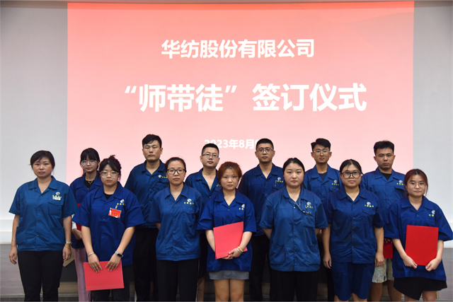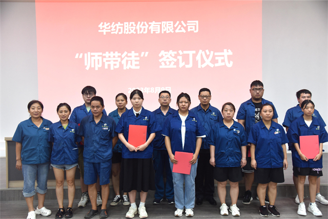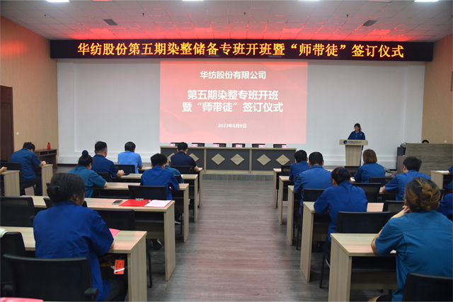 導(dǎo)讀:8月9日,公司舉行第五期染整技術(shù)儲(chǔ)備人才專班開班暨“師帶徒”簽訂儀式。