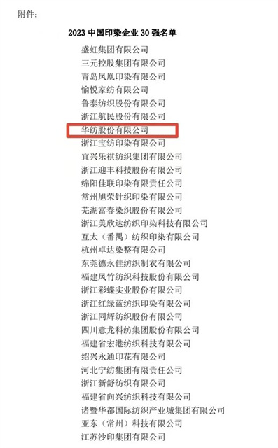 導(dǎo)讀:近日,中國印染行業(yè)協(xié)會(huì)下發(fā)了《關(guān)于公布2023年中國印染企業(yè)30強(qiáng)的通知》,