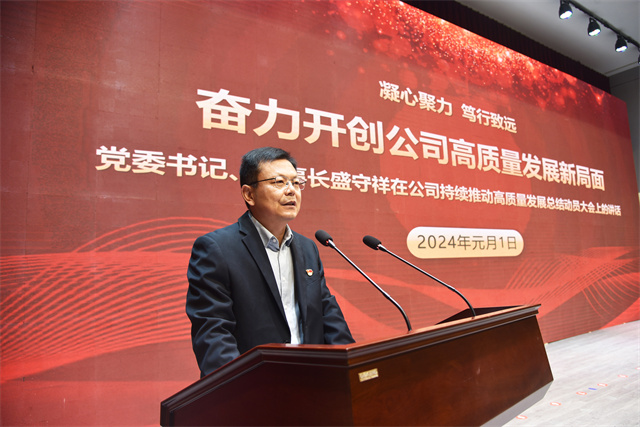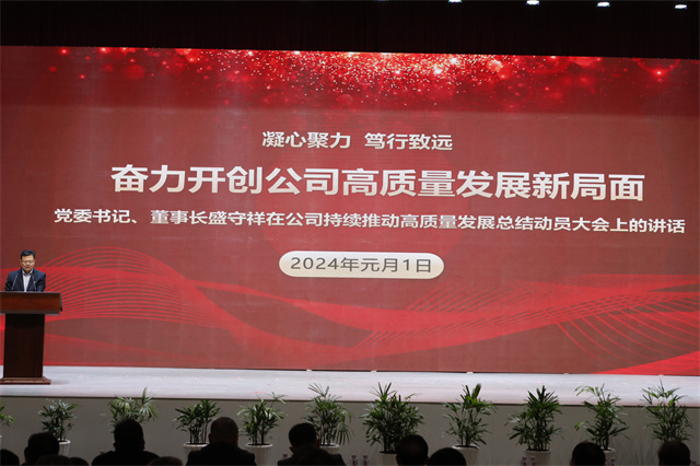 會(huì)議最后,盛守祥作了題為《凝心聚力 篤行致遠(yuǎn) 奮力開創(chuàng)公司高質(zhì)量發(fā)展新局面》的工作報(bào)告。報(bào)告全面總結(jié)梳理了公司過去一年的工作,深刻剖析了實(shí)際工作中的問題,為新階段工作提出了指導(dǎo)性意見。2024年,公司主要工作概括為四個(gè)方面:一是堅(jiān)持黨建引領(lǐng),夯實(shí)政治保障;二是堅(jiān)持綠色發(fā)展,抓好環(huán)保安全;三是以架構(gòu)之變、價(jià)值作風(fēng)之變、績(jī)效之變、造血止血之變、團(tuán)隊(duì)之變開啟變革之年,全面突破在望;四是在“產(chǎn)業(yè)鏈、資金鏈、人才鏈、創(chuàng)新鏈、供應(yīng)鏈”上持續(xù)發(fā)力,共建百億家園。