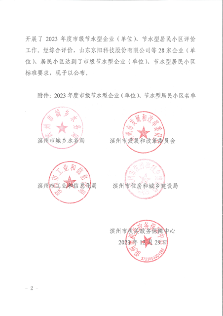 喜報(bào)!公司獲評(píng)2023年度濱州市節(jié)水型企業(yè)