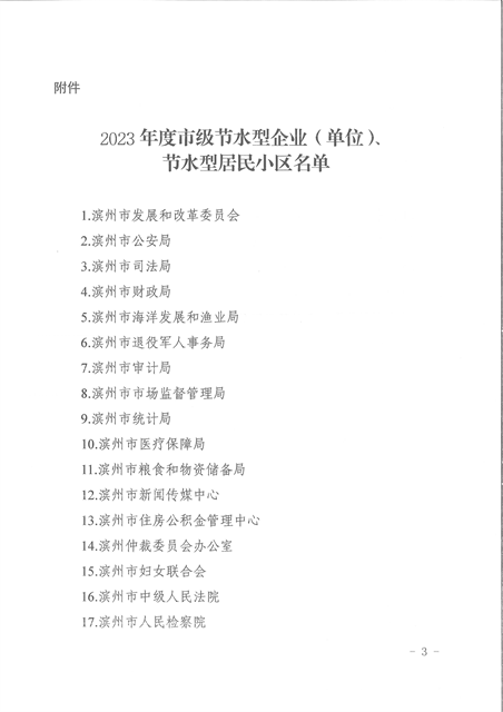 導(dǎo)讀:近日,濱州市城鄉(xiāng)水務(wù)局、濱州市發(fā)展和改革委員會(huì)、濱州市工業(yè)和信息化局、濱州市住房和城鄉(xiāng)建設(shè)局、濱州市機(jī)關(guān)政務(wù)保障中心發(fā)布了《關(guān)于公布2023年度市級(jí)節(jié)水型企業(yè)(單位)、節(jié)