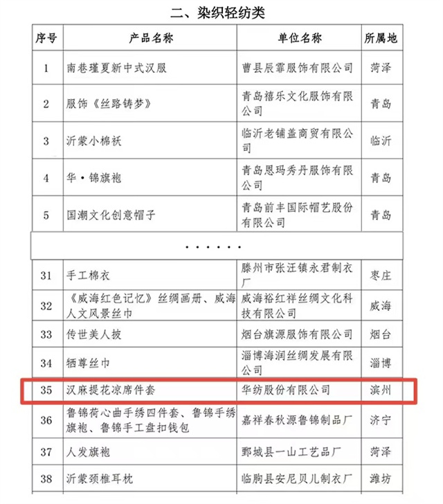 導讀:其中,公司家紡床品產(chǎn)品——漢麻提花涼席件套作為染織輕紡類,成功入選2023“山東手造·優(yōu)選100”名單,這無疑是對公司產(chǎn)品品質(zhì)與工藝的高度認可。