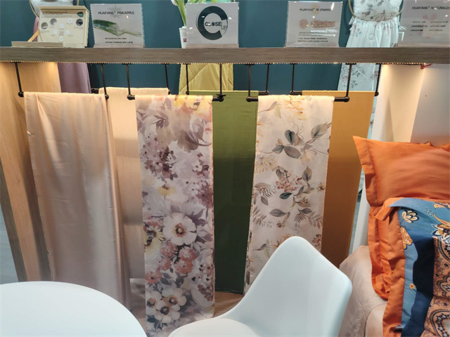 此屆法蘭克福家紡展,華紡股份家紡分公司打造了以“Green world”為主題,以綠色環(huán)保可持續(xù)的特色纖維產(chǎn)品為主材質(zhì),研發(fā)了醋酸系列/真橙系列/木棉系列/絲質(zhì)系列/超柔系列/麻系列六大系列產(chǎn)品,從材質(zhì)、功能、膚感、科技、花型、款式等多方面對(duì)產(chǎn)品進(jìn)行了融合升級(jí),吸引了來自法國(guó)、意大利、葡萄牙等諸多國(guó)家的客戶進(jìn)入展位進(jìn)行咨詢洽談!其中,迎合歐洲市場(chǎng)喜好的亞麻、漢麻提花、色織簡(jiǎn)約條紋產(chǎn)品也成功吸引了來自歐美的客戶。