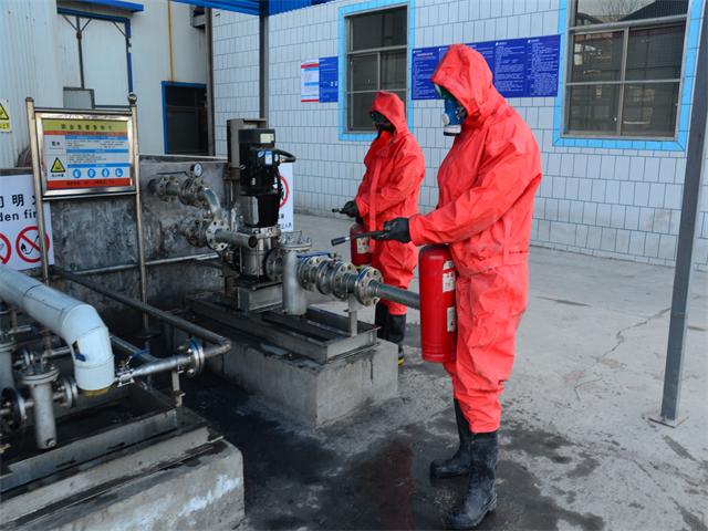 這一幕正是動(dòng)力公司2月20日進(jìn)行防泄漏演練時(shí)的情形。當(dāng)日,動(dòng)力公司按照公司安保部制定的年度應(yīng)急預(yù)案演練大綱,進(jìn)行了一次氨水泄漏應(yīng)急處理演練。同日,面一車間進(jìn)行了導(dǎo)熱油泄漏現(xiàn)場(chǎng)處置演練。經(jīng)安保部和部門主管測(cè)評(píng),兩次演練均符合流程標(biāo)準(zhǔn),達(dá)到了預(yù)期效果。