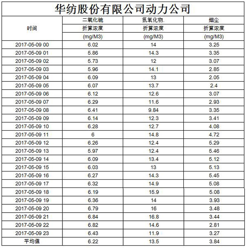 煙氣排放數(shù)據(jù)信息公開2017.5.9數(shù)據(jù)