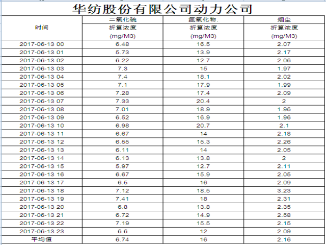 煙氣排放數(shù)據(jù)信息公開2017.6.13數(shù)據(jù)