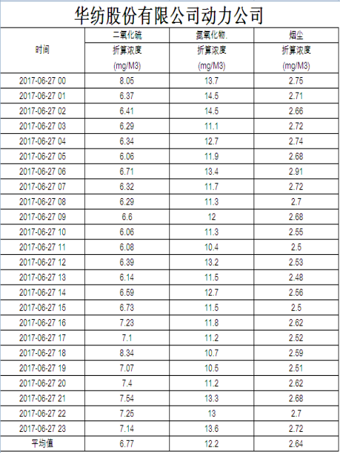 煙氣排放數(shù)據(jù)信息公開2017.6.27數(shù)據(jù)